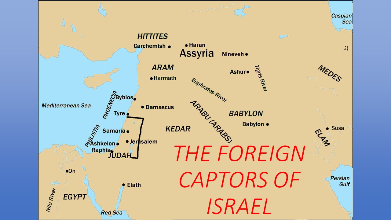The following is a basic outline and a series of graphics that aproximate the growth of Israel's conquering countries. The graphics show size, but only to demonstrate a countries dominance over time - the growth is not accurate. The dates are based on research from only a couple of resources and are, most likely, reasonably accurage.