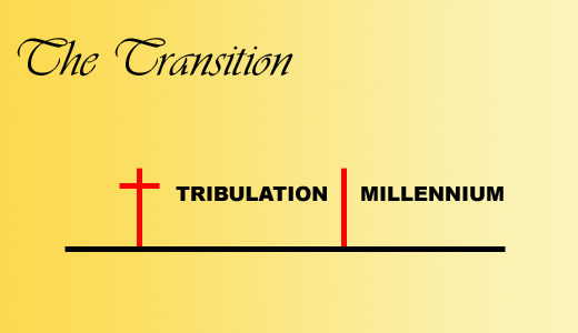 Fourth, now look at the transition which is brought about by the return of our Lord Jesus Christ which, according to us millennialists, will be preluded by flaming judgment on international gangsters, leading to His institution of the 1000 year reign. Earth's Golden Age. All millennialists agree there will be a vast change between the Tribulation and the Millennium: